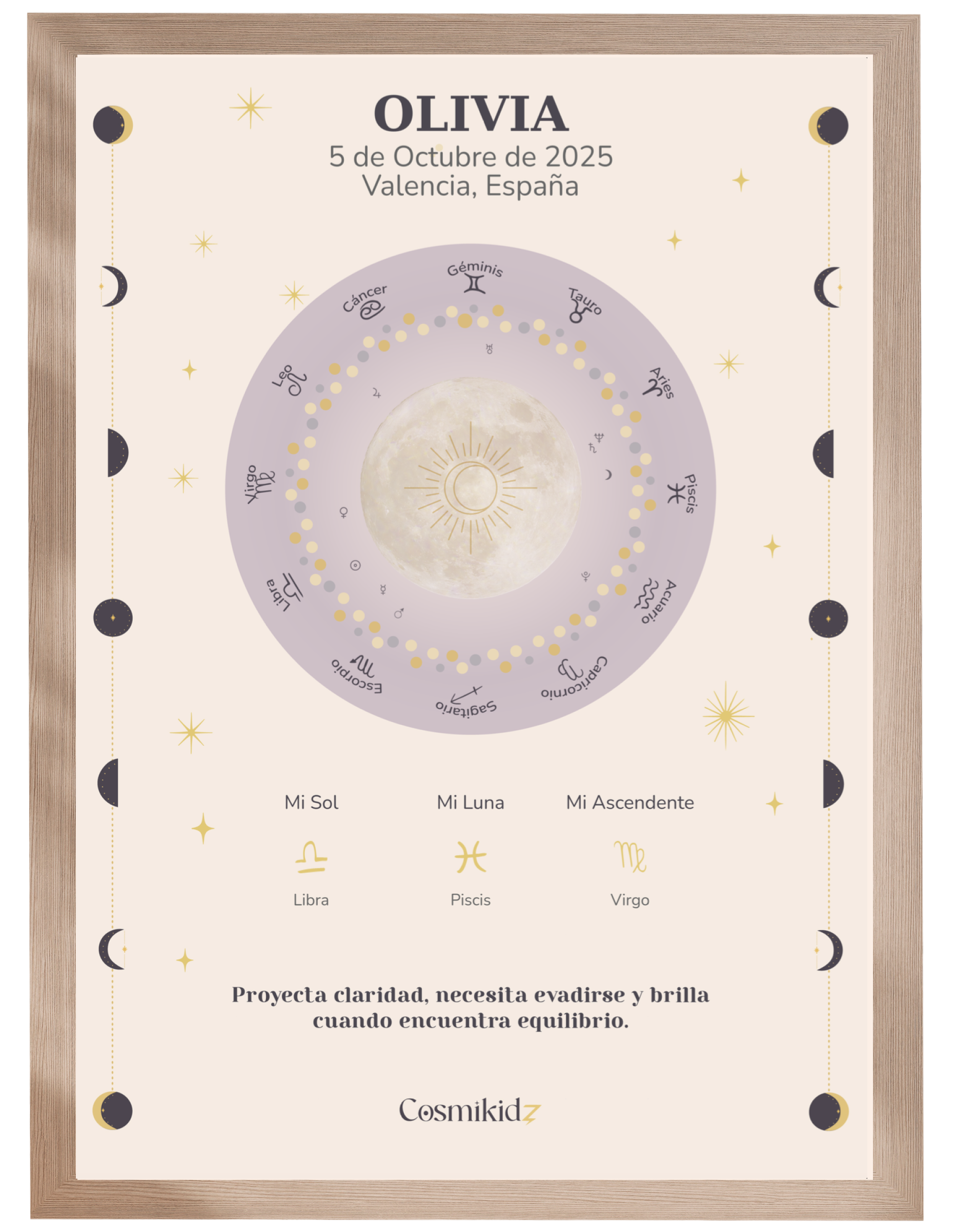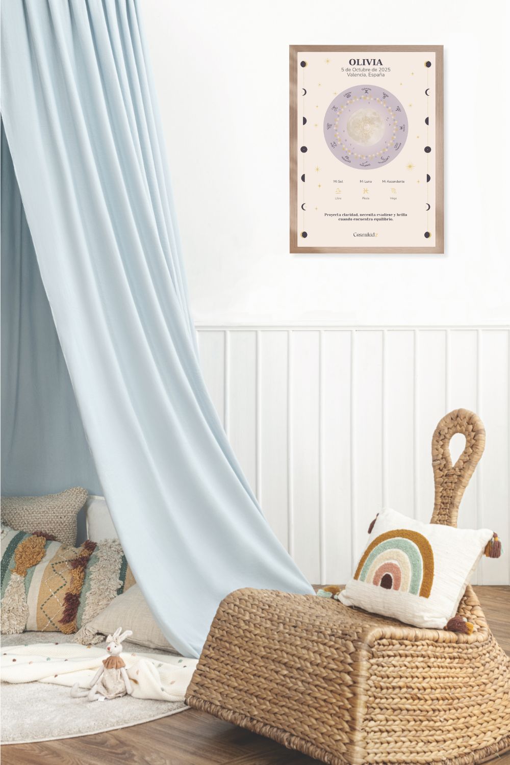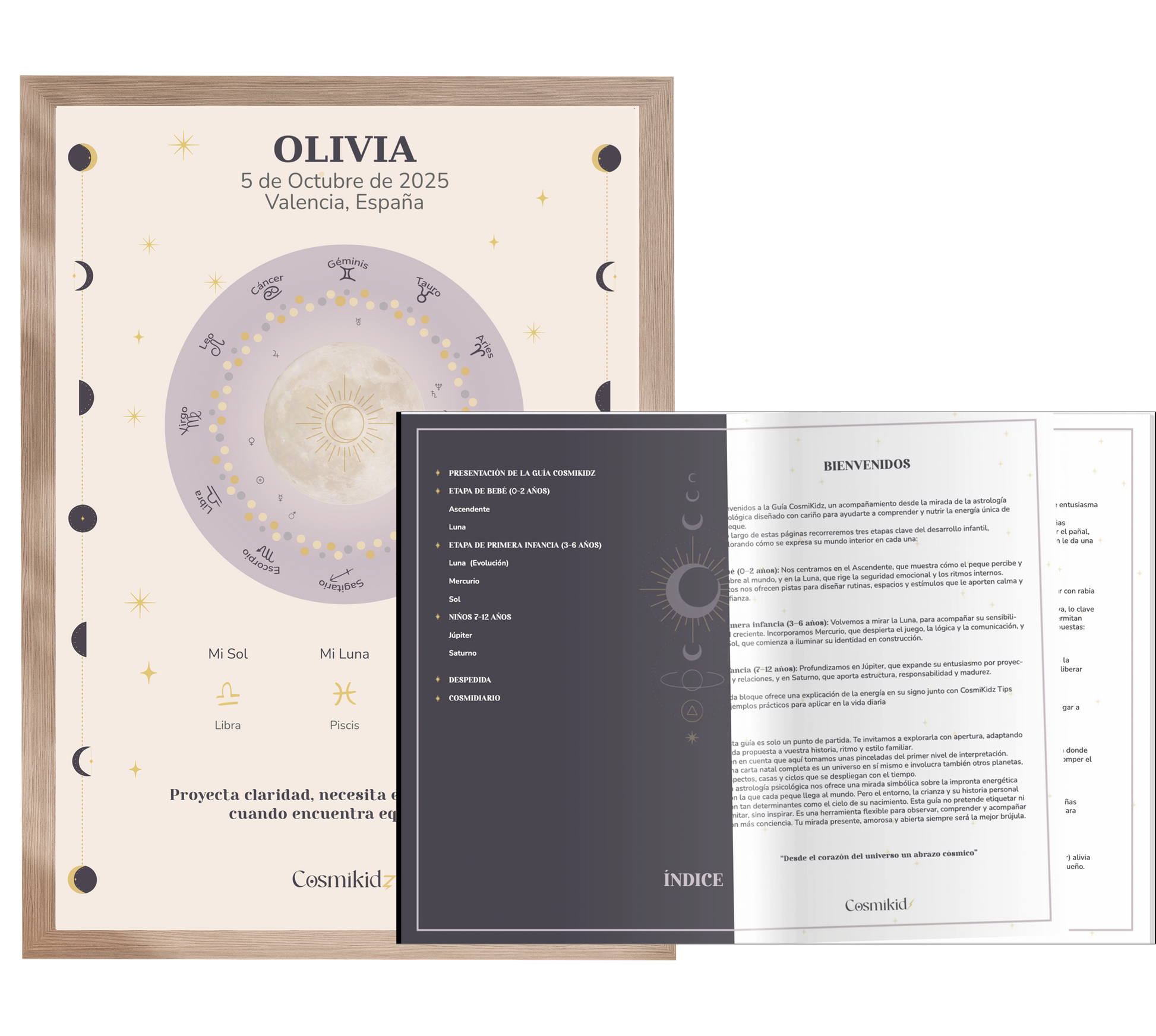 Unalámina ilustradacon su cielo natal, perfecta para decorar su habitación y unaguía de acompañamientocon ideas y ejemplos prácticos para acompañar sus emociones, aprendizajes y talentos.